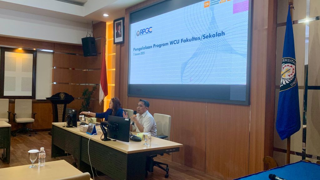 Direktur RKKG, Prof. Hadiyanto, dan Wadir Reputasi Global, Dessy Ariyanti, Ph.D menjadi Narasumber Rapat Koordinasi dan Sosialisasi Program WCU 2025