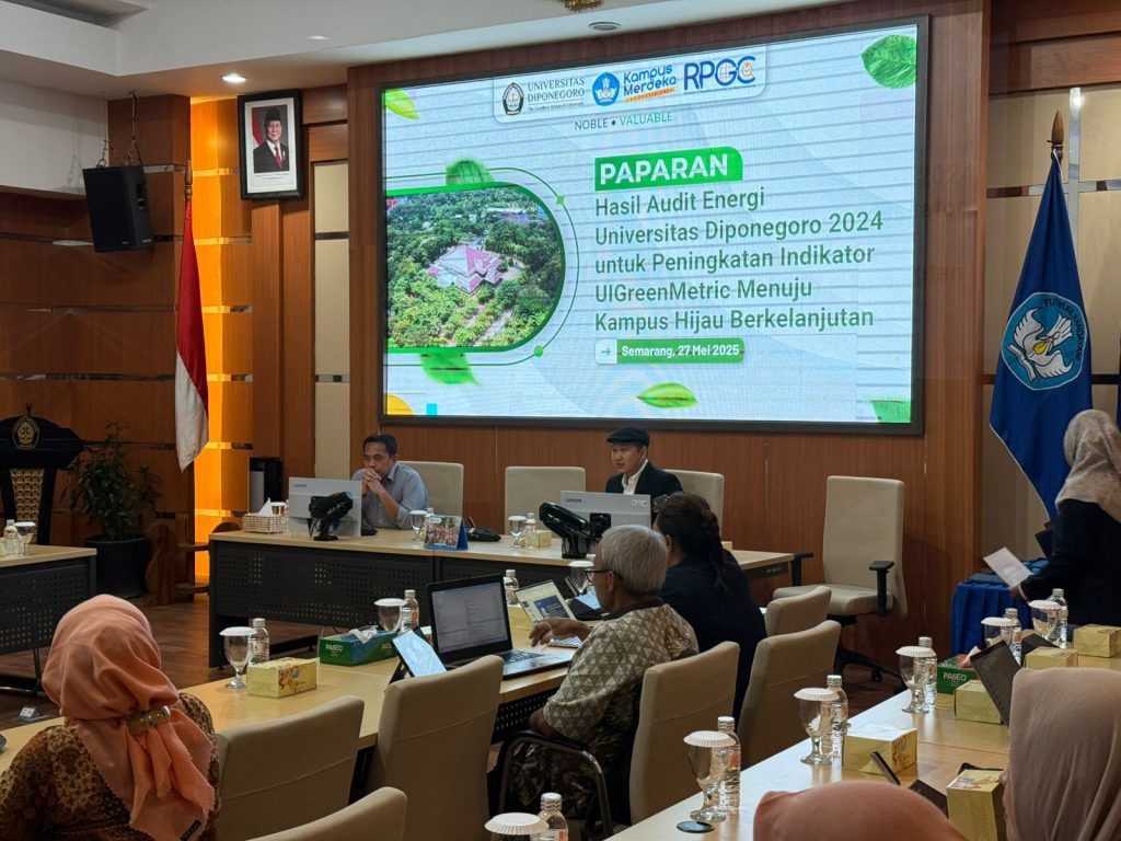 Subdir Reputasi Global yang berada dalam Direktorat Reputasi Kemitraan dan Konektivitas Global (DRKKG), sebagai koordinator pemeringkatan, menyelenggarakan Sosialisasi Hasil Audit Energi Universitas Diponegoro 2025 sebagai upaya mendukung persiapan Pemeringkatan UI GreenMetric. Sosialisasi ini mengundang Para Wakil Dekan Sumber daya dan Para Supervisor bidang terkait energi dari 13 Fakultas/Sekolah, dengan Karnoto, S.T., M.T sebagai narasumber. Diselenggarakan pada 27 Mei 2025 pukul 10.00 WIB di Ruang Sidang Rektor, DRKKG menjembatani pemahaman penggunaan energi hemat di gedung-gedung di kampus UNDIP.